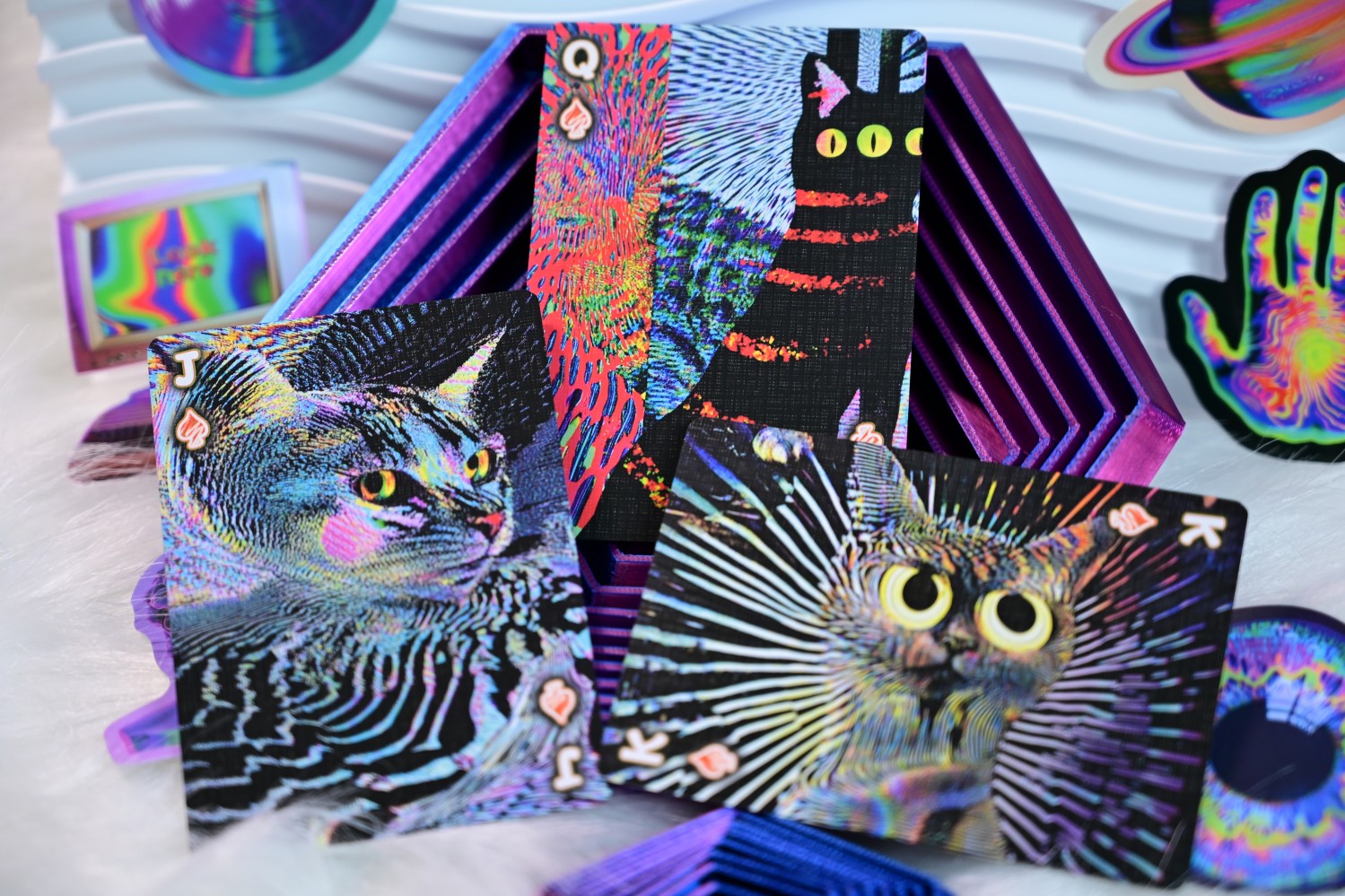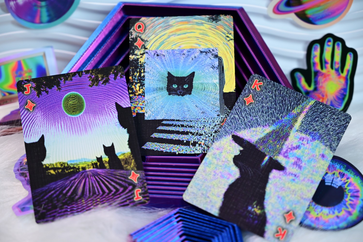 Upgraded Meow Meow Fantasia! Triple transformation grating card box, abstract artistic design! Let your thoughts drift to outer space with the black cat!